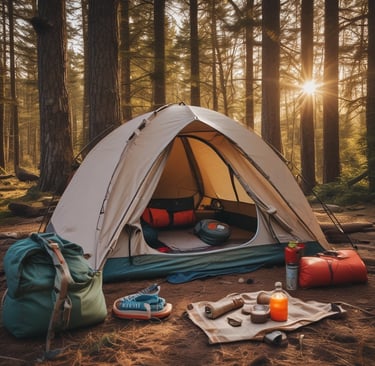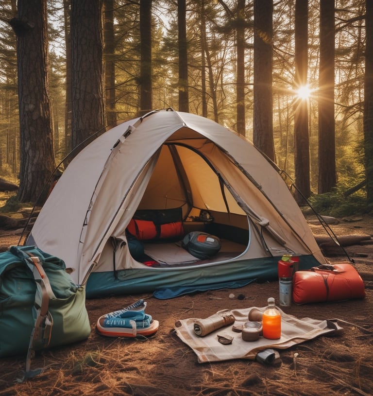 Our essential camping furniture and accessories include a camping tent, sleeping bags, sleeping pads, camping chairs, portable table, lantern, headlamps, cooking utensils, portable stove, and much more.
